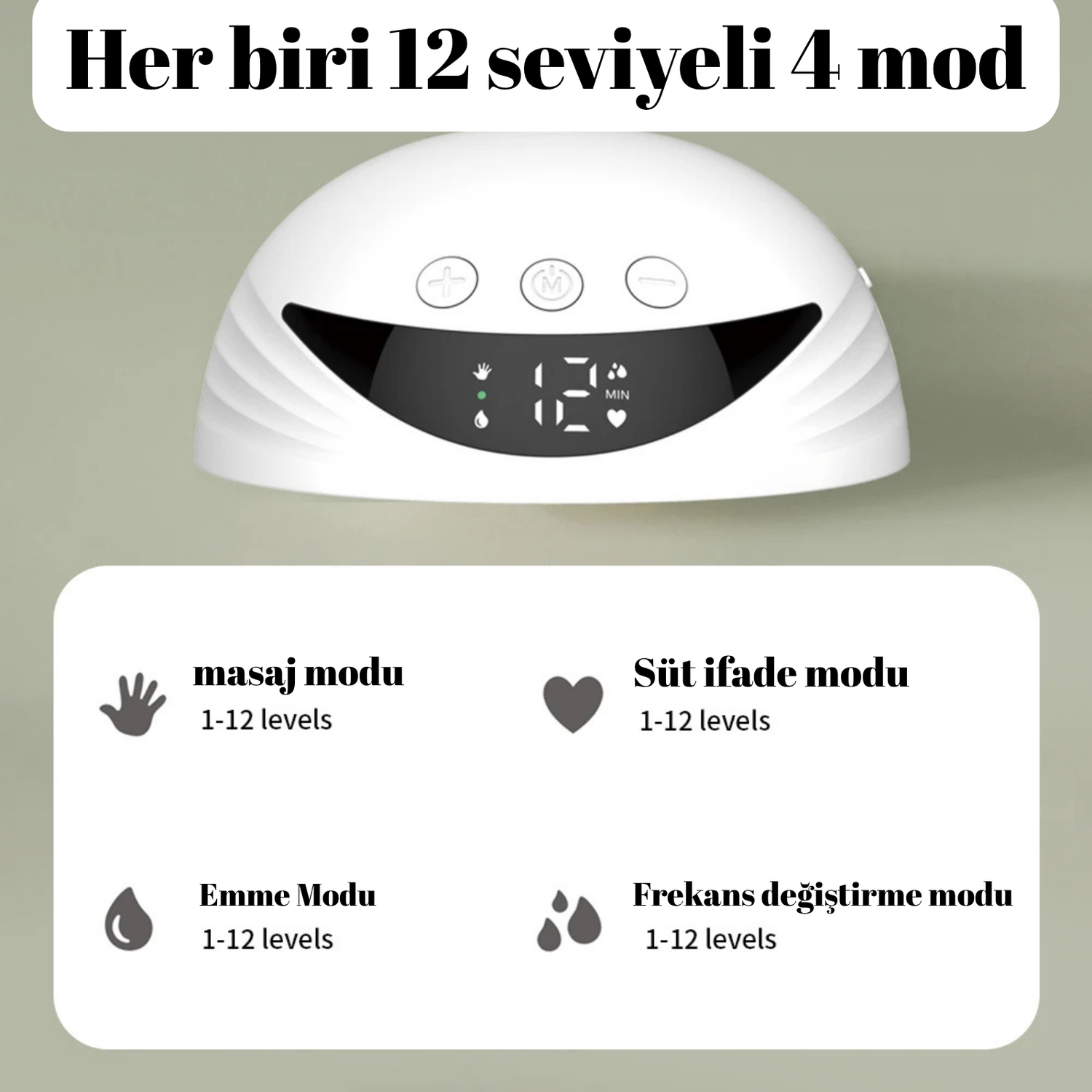 Kablolara veda edin — şık ve kompakt yapısı sayesinde her yerde özgürce kullanabilirsiniz. Gelişmiş emiş gücü, doğal emzirme hissini taklit ederek süt üretimini destekler. Ergonomik silikon başlığı hassas ciltlere uygun olup maksimum rahatlık sağlar.